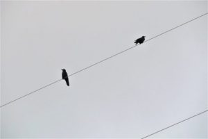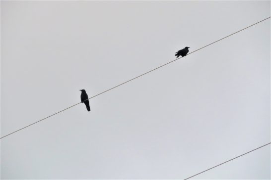 ・写真1、雲ひとつない快晴続きで夕映えも絵にならなかったが、今夕は少し雲が出ていたのでパチリ。2、カラスのカップル? 喧嘩でもしたのか1メートルも離れて、お互いに反対の方を向いていた。〔仕事と歩数〕赤穂吟社誌上大会選考。6,624歩。