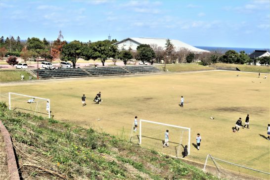 ・写真1、昼前散歩にて、総合公園のサッカーグランド。試合前の練習なのか、若者たちが元気にボールを追いかけていた。2、しかし、野球場には猫の子も犬の子も人間の子もいなかった。やはりサッカーの方が人気があるのだろうか。青い水平線は日本海。 〔仕事と歩数〕ゲラ校正ほか。6,113歩。