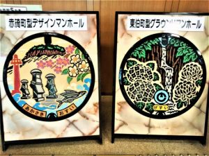 ・写真1、昼前散歩の農道にて。2、赤﨑分庁舎の玄関にあったマンホール。琴浦町は「東伯町」と「赤碕町」が合併した町で、右側が旧東伯町名所の「大山滝」と「逢束海岸の紫陽花」。左は旧赤碕町名所の「船上山」と「赤碕海岸の波しぐれ三度笠」。 〔仕事と歩数〕センマガ名句鑑賞。ジビエ川柳選考。6,705歩。
