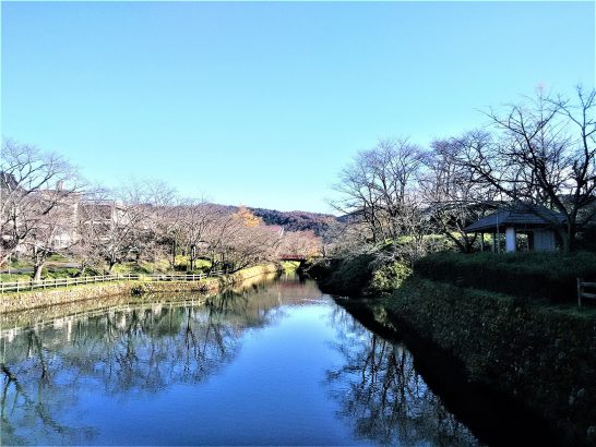 堀の周りの紅葉は散っていましたが水が澄んで綺麗でした。写真3の坂を上ると城山の頂上で良い景色ですが、足が「もう無理、、、」と言うのでUターンしました。