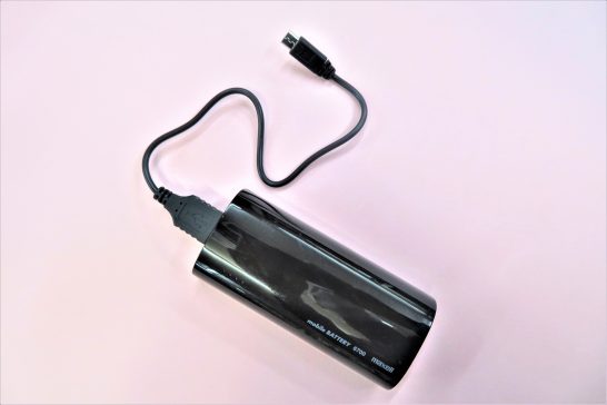 ・ただ、車やJRでの移動中はそのようなコードで大丈夫だが、それ以外の所でも充電する必要が生じたときのために、本日、所用で倉吉に出たついでに大型電気店に立ち寄って携帯バッテリーをゲット(写真2)。これで当分の間は何処でも対処できる。だが、これ以上減るのが早くなれば交換してもらわなければならない。