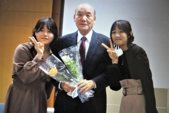 この写真、ちょっとテレくさいのと自慢くさいので、アップするかどうか迷いましたが、もうこういうことは無いだろうと思って鈴鹿川柳会から拝借しました。