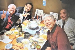 写真は、水品団石さんのブログから拝借したもので、松江の懇親会の様子。さして広くもない部屋に27人ギッシリ。2時間以上もこのような調子でわいわいガヤガヤやっていたので、1人でも感染者がいたら全員アウト。だが、今のところ熱もないし酒も旨いので大丈夫だろう。