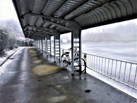 ・上の写真は、本日夕刻の散歩にて。降り出した雪を見ながら「寒いな~…」と言っていた自転車。このフレームが青い自転車を農道の脇で最初に見たのはもう3~4年も前のことで、そのときの写真はこのブログにもアップした。その後、誰かが「吹き曝しではかわいそう…」と思ったのか、この総合公園の駐輪場へ移されていた。そして、この駐輪場へ来てからでも1年以上になると思うが、誰も引き取りに来ず、誰も持って行こうともせず、ずっとここでポツンと人待ち顔で佇んでいる。