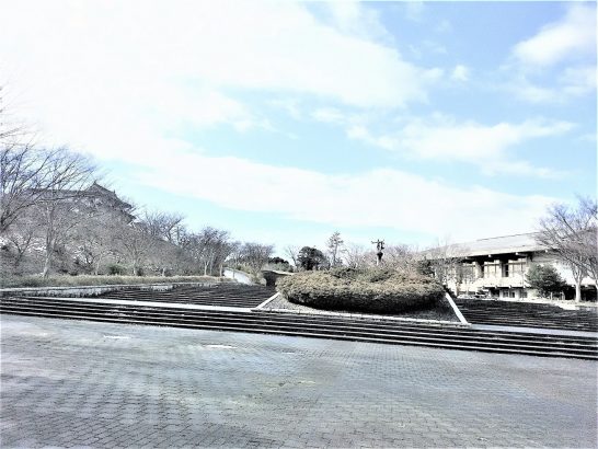 ・散歩コースの総合公園遊歩道の雪はほとんど溶けてきたので、長靴から軽い靴に履き替えてラクチン。昼前散歩では雲も切れて青空が見えていた。写真・総合公園エントランス(ちょっと斜めになってしまった…(-_-;)。だが、夕刻散歩では猛烈な風が出て寒かったのでUターン。ホームセンターで買い物をしながらぶらぶら。