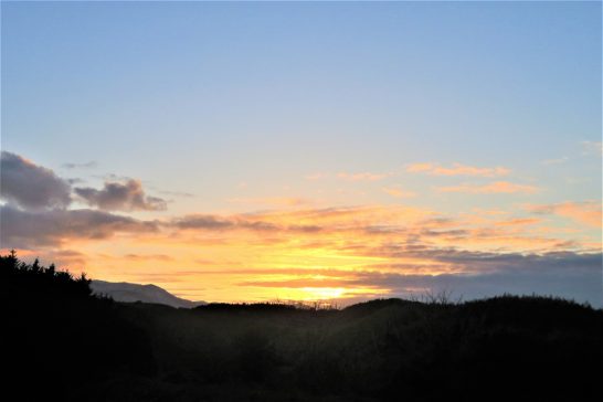 ・本日、西高東低の冬型気圧配置が緩んで、青空が広がり最高気温も11℃まで上がったようで凌ぎ易かった。写真1は昼前散歩にて。農道の上の青空。2は夕刻散歩での夕映え。〔仕事と歩数〕各種川柳関係の書類整理。5,814歩。懐メロアップはまた後日。