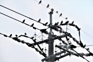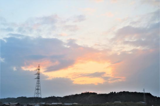 ・写真1は本日の夕景。2は、夕刻散歩からの帰途、電線にとまっていた雀。みんな西を向いていると思ったが、写真で見ると反対を向いている臍曲がりも数羽いる。 〔仕事と歩数〕塔社会議向け資料作成&誌上大会向け作句。6,143歩。