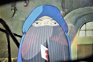 ・その楽しくなれることの1つがユーモア川柳。これは探し回らなくても見つかるので有り難い。そう言えば、先日久しぶりにテレビで「ハウルの動く城」を観た。中でも笑ったのは、マルクルという少年(写真2)。可愛い子どもなのだが、外へ出るときはマントを着てフードを被って、長い髭をつけて老人に変装(3)。そして喋り方も声も老人の真似をするのだが、これが面白くてその度に笑ってしまった。中でも、ソフィーが「そんな変装やめなさい」とかなんとか言ったとき、「変装ではない、魔法じゃ…」には大笑い。