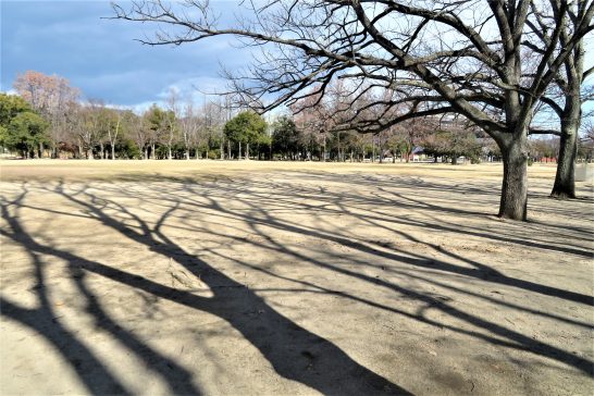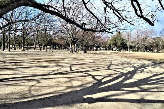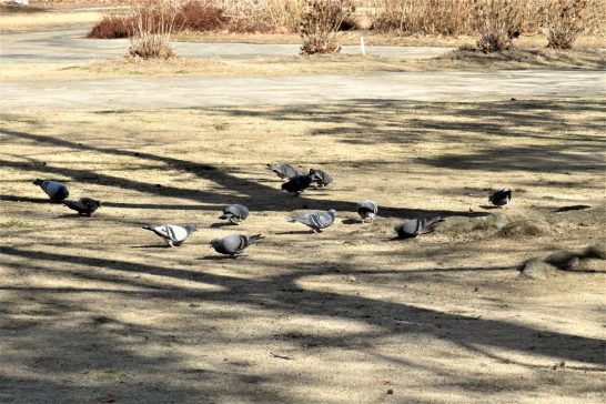 ・写真1と2と3、総合グランドにて。裸木の影と鳩。写真下、高梁SAにて。考えるベンチ。「雪がなくてよかったですね。でもまだ2月があります。くれぐれもご注意を!」と言っていた。〔仕事と歩数〕山陽カルチャー。4,207歩(総合グランドでの散歩)。