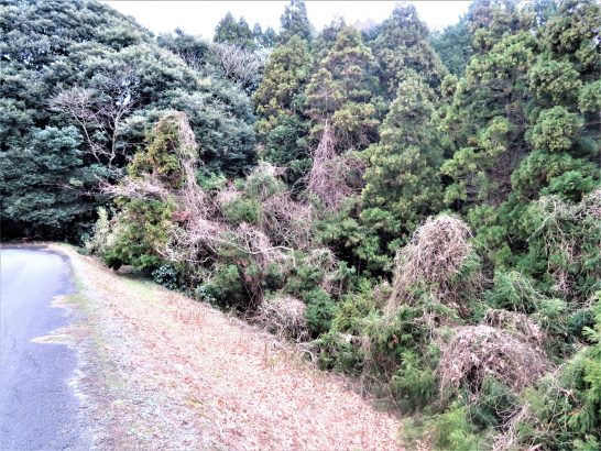 ・先日のブログで看板(交通標識)に蔓が絡まっている写真をアップしたが、本日は雑木に絡まっている蔓(写真上)。この左に見えている道は総合公園の遊歩道。公園内の立ち木は定期的に手入れされているのでこのようなことはないが、この道から右側は私有林?になっているのか?放置されたままでこのような状態。この右側の坂の先は暗くて深い谷のようになっていて、チョッと不気味なので下まで降りたことはない。まあ、足が滑って転がり落ちても樹木にひっかって谷底まで落ちることはない、と思うが…。 〔仕事と歩数〕しんぶん赤旗「読者の文芸」選考。大山滝句座会報作成。7,201歩。