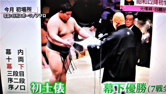 ・倉吉市出身の落合が幕下で全勝優勝していきなり十両に昇進(写真1)。石浦の休場が続いていて寂しかったが、来場所から楽しみである。だが、このブログで応援すると負けることが多いので、気まぐれにときどきアップする予定。