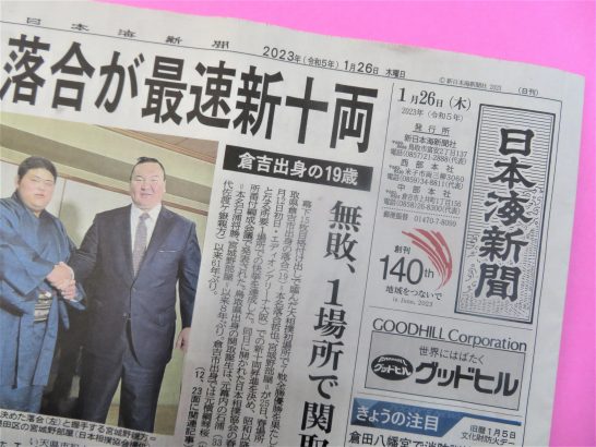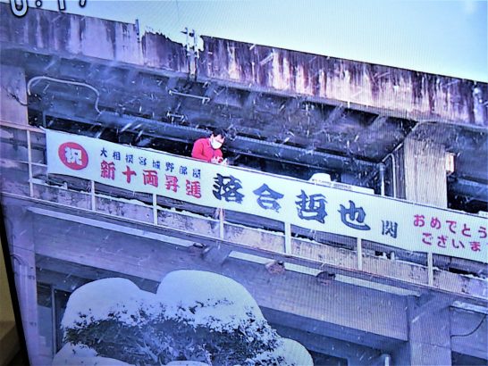 ・写真1は、一昨日のTVローカルニュース。雪が降る中で倉吉市庁舎に掲げられたお祝いの横断幕。2は、昨日(26日)の地元紙【日本海新聞】のトップ記事。 〔仕事と歩数〕仕事できず。3,153歩。