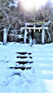 ・写真1、鹿野城址公園。2、城跡へ上る最初の石段と鳥居。鳥居の後ろからご来光? 〔仕事と歩数〕センマガ「名句鑑賞」。鹿野川柳会出席。5,390歩。