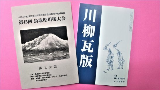 ・昨日、帰宅したら掲題の発表誌が届いていた。【第45回 鳥取県川柳大会】は誌上大会だったので、確認するとセオリー通り2句入選。川柳瓦版は3句入選だった。鳥取県大会では【嬉しい】の選を仰せつかっていたので、そのベスト8をご紹介します。