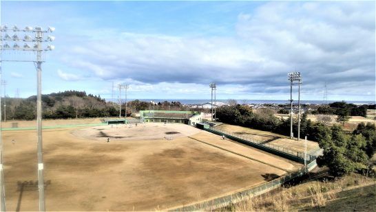 ・本日、好天で最高気温も12℃?山陰の冬にしては快適だった 。写真1、昼前散歩にて総合公園の野球場。若者が練習していた。背景の水平線は日本海。2、夕刻散歩にて。午後5時15分頃の西空。〔仕事と歩数〕打吹川柳会出席ほか。6,715歩。