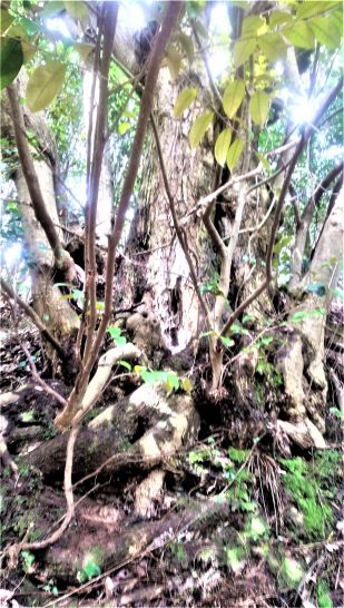 ・写真上、切り通しにて。逞しい根っ子が露出している大木。〔仕事と歩数〕塔誌向け「川柳飛行船」。5,369歩。