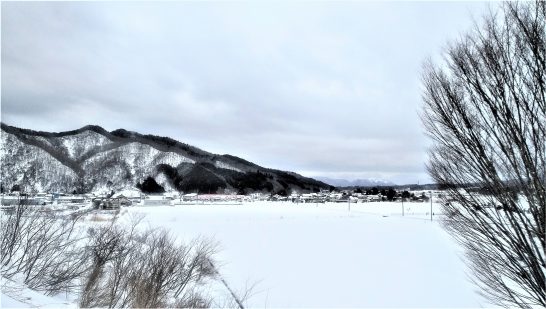 ・本日、第3木曜日にて山陽カルチャー例会日。たっぷり余裕を持って9時25分出発。いつものルートで、犬狭トンネルを通過して蒜山高原に出ると、いきなり一面の雪景色(写真1)。路面も日陰のところは凍結、特に橋の上はガッチガチ。日当たりの良いところでもシャーベット状。橋上の凍結も凸凹なので、ハンドルを取られぬように慎重に…。湯原インターに着いたときはホッとひと息。