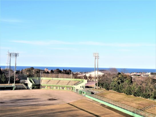・本日、午後から晴れてきたが風は冷たかった。写真上は夕刻散歩の総合公園にて。野球場から見た水平線。海の色は空の色を反映するので今日は綺麗な群青だった。 〔仕事と歩数〕塔社向け「愛染帖」「飛行船」などチェック後メール&発送。6,014歩。