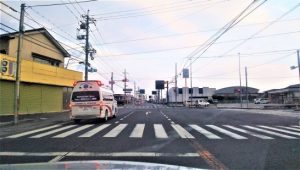 ・写真1、午後から快晴だったが、夕刻歩いているうちに北の空から黒雲が広がってきて夕映えを覆ってしまった。そして、帰宅寸前に大粒の雨がバラバラ。2、夕刻散歩からの帰途。今日も国道9号線を走っていたら、後ろからピーポーピーポーと救急車。私はちょうど右折のために信号待ちだったので、赤信号を慎重に通過する救急車をパチリ。 〔仕事と歩数〕大山滝句座会報作成。7,455歩。