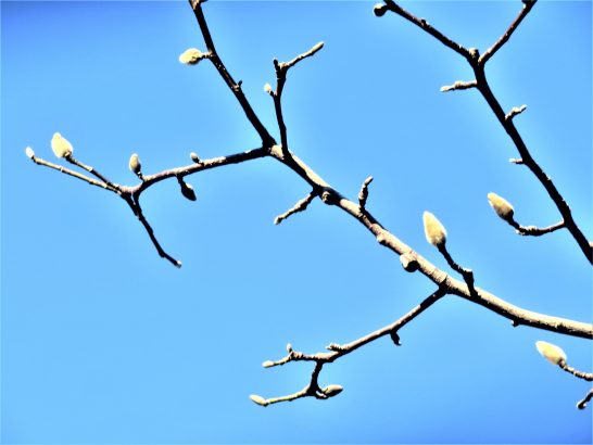 おはようございます。ハクモクレン、もう早くから蕾を見せてくれていますが、なかなか膨らんできません。15℃以上の暖かい日が続くと一気に咲くのでしょうか、待ち遠しいです。
