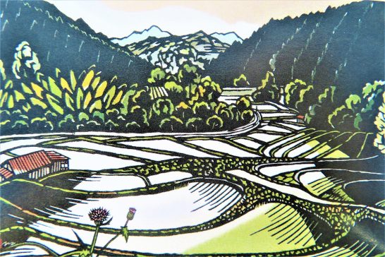 棚田、いいですね。切り絵と思えないぐらいに遠近感があって見惚れてしまいます。水彩画、油絵、水墨画、切り絵等々、それぞれ違った味わいがあります。