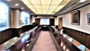 【19日】本日、第3日曜日にてホームの「大山滝句座」例会日。昼前散歩と昼食を済ませて12時に出発。会場の「まなびタウンとうはく」の部屋を予約したとき、いつもの研修室が塞がっていたので「第1会議室」を予約。初めて使う部屋だが、国際会議でも開けるような豪華な雰囲気(写真2)。ただ慣れていないので、チョッと使い勝手が悪い感じだった(特に選者のスペースが取れないこと)。