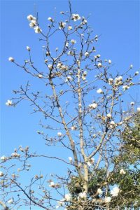 ・朝から雲ひとつない快晴。夕刻散歩の総合公園では、子供広場が大人と子供でいっぱい。早咲きの桜が微笑んでいた。また、ハクモクレンも満開に近かった(写真3、4)〔仕事と歩数〕大山滝句座開催。7,405歩。