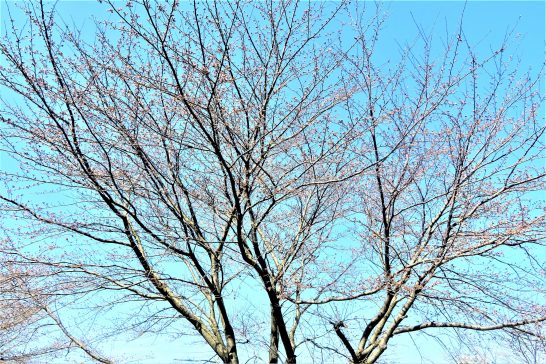 ・昨日、鳥取市で「開花宣言」したということで、朝刊にも写真が載っていた。で、総合公園の桜を見て回ったが、花芽は膨らんで、全体が薄いピンク色に染まってきているが、まだ1輪も咲いていなかった(写真1)。その中で「明日開きますよ~」と言っている枝があった(写真2)。〔仕事と歩数〕愛染帖選考PCインプット。6,175歩。