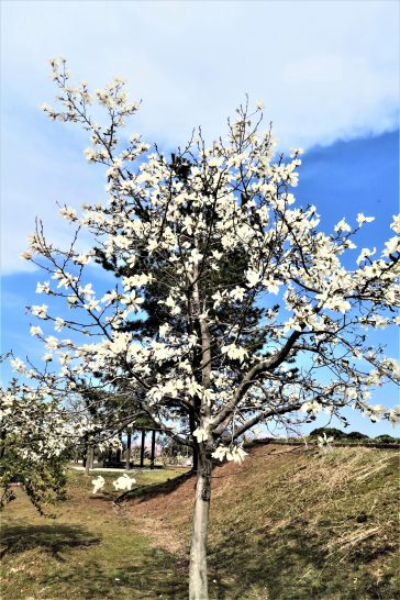 ・写真1、昨日のコメントで褒めて貰った🌸。今日も元気いっぱい咲いていた。2、その向かいのハクモクレンも半分散っていながら「まだまだ!」と頑張っていた。3、桜と新緑と雲と風(風は見えないが)。〔仕事と歩数〕らくだ忌大会の選評ほか。6,036歩。