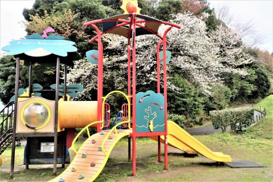 本日、朝から久しぶりの雨。昼前散歩に出ようと思っていたら、薬を処方して貰う検診日(30日に1度、血糖と血圧)だったことを思い出して散歩はパス。夕刻散歩のときは止んでいたので頑張って歩いて、目標の5,000歩オーバー。総合公園「子ども広場」の遊具の後ろの桜が「まだまだ~!」と頑張っていた(写真)。〔仕事と歩数〕大山滝句座&川柳塔社向け作句ほか。5,908歩。