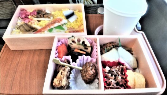 ・終了後、メトロにて新大阪へ。祭り寿司(写真2)とツマミと黒霧をゲット。午後5時19分発の「スーパーはくと11号」(写真1)に乗車してから1人宴会。倉吉にて普通列車(コナンのラッピングカー)(写真3)に乗り換え帰着は午後9時35分。〔仕事と歩数〕川柳塔社4月度常任理事会&句会出席。10,661歩。