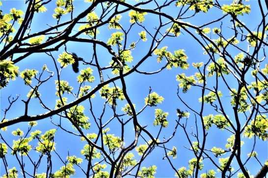 ・写真1、本日、昼前散歩にて。花ではなく、太陽光線に透かした若葉。花は美しいがすぐに色褪せて散ってしまう。葉は地味ではあるが、新緑から少しずつ色を変えて紅葉まで楽しませてくれる。2、夕刻散歩にて。1とは違う場所。〔仕事と歩数〕葦群抄鑑賞メール送稿。月末締切投句向け作句。6,533歩。