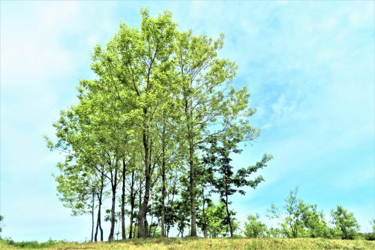 ・写真は夕刻散歩の農道にて。若木の若葉が輝いていた。〔仕事と歩数〕川柳展望会員作品評。6,106歩。