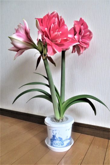 このアマリリスは今年買ったものでピンクです。3年目のは赤で、1週間ほど前にピークを迎えて、数日前に萎れたので茎のところからカットしました。このピンクも毎年楽しませてくれるでしょう。