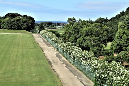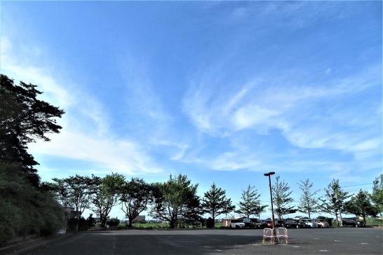 ・写真1、総合公園サッカー場南の「白花夾竹桃」の植え込み。2、駐車場上のゆったり嫋やかな雲。〔仕事と歩数〕毎日新聞山陰柳壇選考。大山滝句座会報作成。6,433歩。