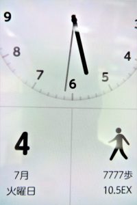 ・写真1、本日の夕刻散歩にて、おもしろい雲(飛行機雲が流れたのかも?)。 〔仕事と歩数〕センマガ「名句鑑賞」再チェック後メール。「おりひめ☆ひこぼし」誌上大会向け作句。7,777歩(ラッキー!!!! 写真下)。