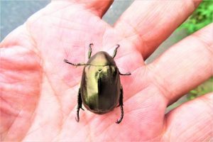 コガネムシ、連れて帰るわけにもゆかないので、草むらに放してやりました。