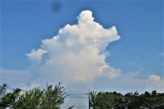 写真1、夕刻散歩での入道雲。「かかってこい!」と力瘤を見せているよう。耳👂まである。〔仕事と歩数〕センマガ名句鑑賞&展望会員作品評。6,912歩。
