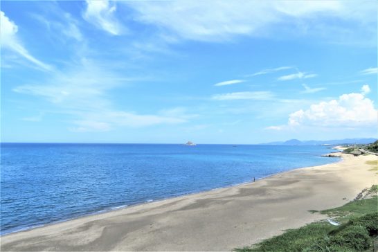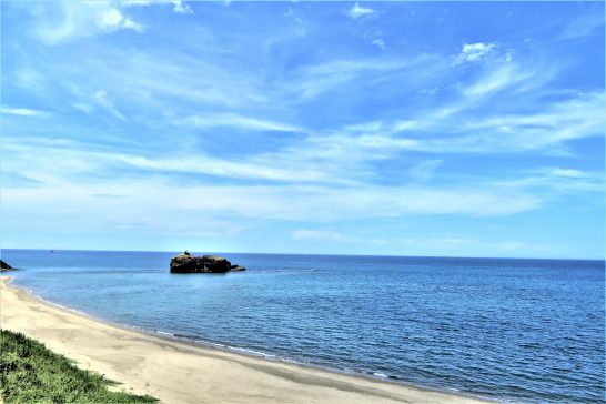 ・岩美川柳会の例会日は第2木曜日が通例だが、8月と12月?は第1木曜日。ということで、11時30分出発。途中コンビニでサンドイッチと野菜ジュースをゲットして、パクつきながら冷房をギンギンに効かせて炎暑の山陰道を快走。途中、定点観測の浦富海岸が海水浴場になっているので入れないことを思い出した。で、鹿野インターで下車して9号線へ。久しぶりに白兎海岸を目指す。写真1、べた凪の白兎海岸ウエストサイド。2、イーストサイド。海岸をしばらくウロウロしてから岩美に向かう。