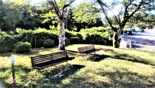 ・午後3時40分頃終了。駐車場出発45分。帰路も加西SAにて小休止。仲良しベンチが「暑いですね~、眠たくなったら休みましょうね!」と言っていた(写真2)。だが、眠くなることもなく、次の小休止は「河原道の駅」にて10分ほど。北栄町で夕映えの風車をパチリと撮って(写真1)。帰着は午後7時ジャスト。〔仕事と歩数〕川柳塔社句会出席。7,306歩(昼休みや休憩時間にホテル内外をウロウロ、よく歩いた)