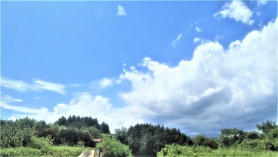 ・写真1~2、本日昼前散歩での夏雲。本日も蒸し暑く、濡れタオルを首に巻いて、誰もいない公園と農道を散歩。〔仕事と歩数〕愛染帖選考&PCインプット。6,115歩。