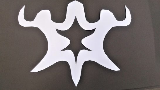 ハサミ、使ってみたらなかなか面白いです。写真のは「こんなことして遊んでいます」という見本が要ると思って、ブログをアップする前に、チョキチョキと5分もかからず切ったものです。左右対称なのは封筒を横から切ったためです。(紙を二つ折りにして切るのと同じです)