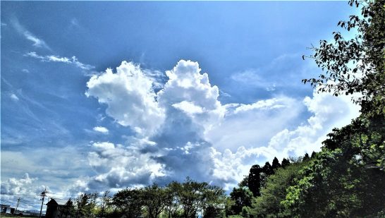 こんばんは~、にわか雨がありましたか、こちらは朝から蒸し暑い1日でした。親子のような夏雲も20分ほどで大きく膨らんで、周囲の雲とくっついてしまいました。