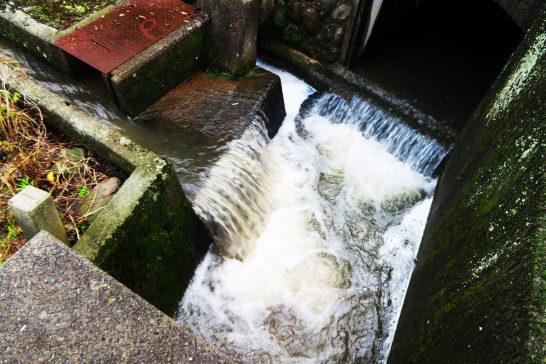 ・夕刻散歩では農業用水の会所にゴウゴウと雨水が流れ込んでいた。普段はあまり流れていない所なので、珍しくて覗いていたら、左の側溝からの水は茶色く濁っていたが、右側からのは綺麗に澄んでいた(写真2)。〔仕事と歩数〕毎日新聞山陰柳壇再チェック後メール。愛染帖選考。6,487歩。