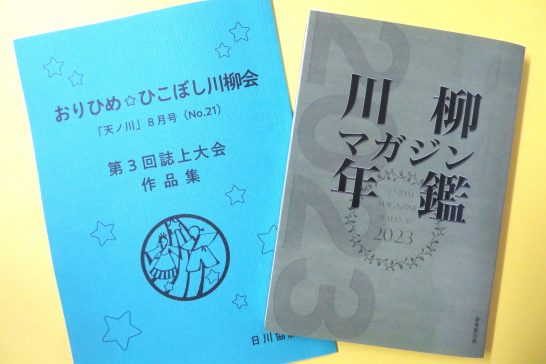 ・本日、【おりひめ☆ひこぼし川柳会第3回誌上大会】の発表誌(写真3の左)と、【川柳マガジン年鑑2023】(写真3の右)が到着。おりひめ☆ひこぼしの誌上大会では「グラデーション」という課題の選を仰せつかっていたので、そのベスト8と、私の入選句(3句)をご紹介。