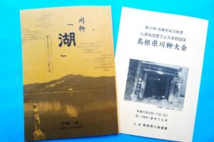 ・本日、川柳【湖】第17号(写真2の左)と「島根県川柳大会」発表誌(写真2の右)が到着。【湖】には、第17回「ふるさと川柳」(誌上大会)の発表あり。課題は【味】で選者12名による共選。1口2句提出で私は3口(6句)応募。6句の内4句入選していたが、その内の2句は選者2名から抜けていたが(下記の〇印)他の2句は各1名の選者から抜けただけ。