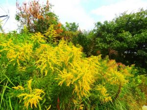・写真1は夕刻散歩での夕焼けに近い雲。2、昼前散歩の農道にて、黄色が鮮やかなセイタカアワダチソウ。〔仕事と歩数〕到着した「愛染帖」選考。6,277歩。