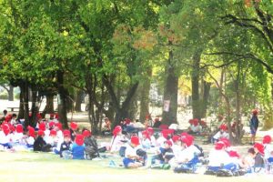 岡山の総合グランド着は11時30分。昼食後ブラブラ散歩。写真上も下2枚も総合グランドにて。子どもたちが芝生の上で楽しそうに昼ごはんを食べていた。幸せな日本の子どもたち。その横でパンパスグラスが揺れていた。