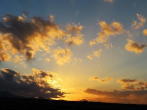 ・写真2、句会場である「まなびタウンとうはく」4階のテラスより鳥取方面をパチリ。3、夕刻散歩での夕映え。〔仕事と歩数〕大山滝句座開催。7,791歩。