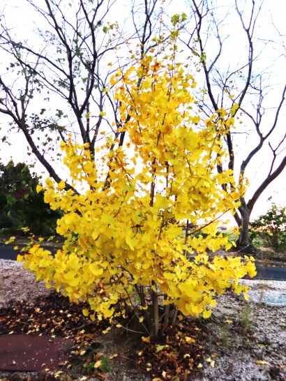 ・写真2、総合公園の駐車場脇にある小さな公孫樹。わざわざ植えたのではなく落下した銀杏が芽を出したのだろう。まだ少年ぐらいだろうが、立派な葉をいっぱい付けている。〔仕事と歩数〕塔社向け「愛染帖」「飛行船」「各地柳壇」「目次下エッセイ」など再チェック後メール送稿&発送。7,200歩。